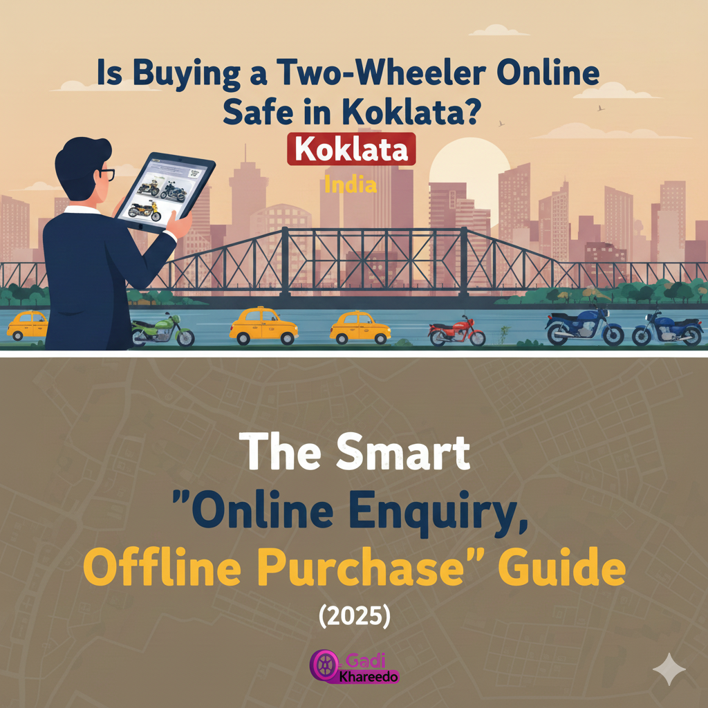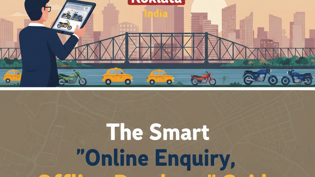 Buying a two-wheeler online in India no longer means making a full digital payment or taking delivery without seeing the vehicle. In cities like Kolkata, Newtown, Rajarhat, Salt Lake, Howrah, Hooghly, Barasat, Baruipur, Sonarpur, Barrackpore, Garia, Behala, Dum Dum, the safest and smartest way to buy a bike or scooter today is through the “online enquiry + offline dealership purchase” model.