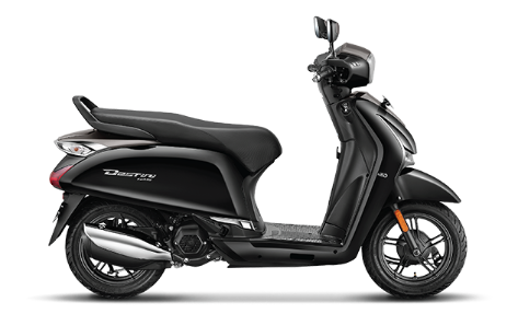 The Destini 125 VX Drum is the entry‐level variant of the 124.6 cc Destini line-up, tailored for everyday urban commuting and family-use in Kolkata. Its automatic CVT transmission, modest power output and efficient engine make it forgiving and user-friendly—especially helpful in stop-and-go city traffic. The drum‐brake front setup, while not as sporty as disc brakes, keeps costs down and maintenance simpler. With its clean styling, good fuel economy and manageable ergonomics, the Destini 125 VX Drum is a solid value pick for someone wanting a 125 cc scooter without too many frills.