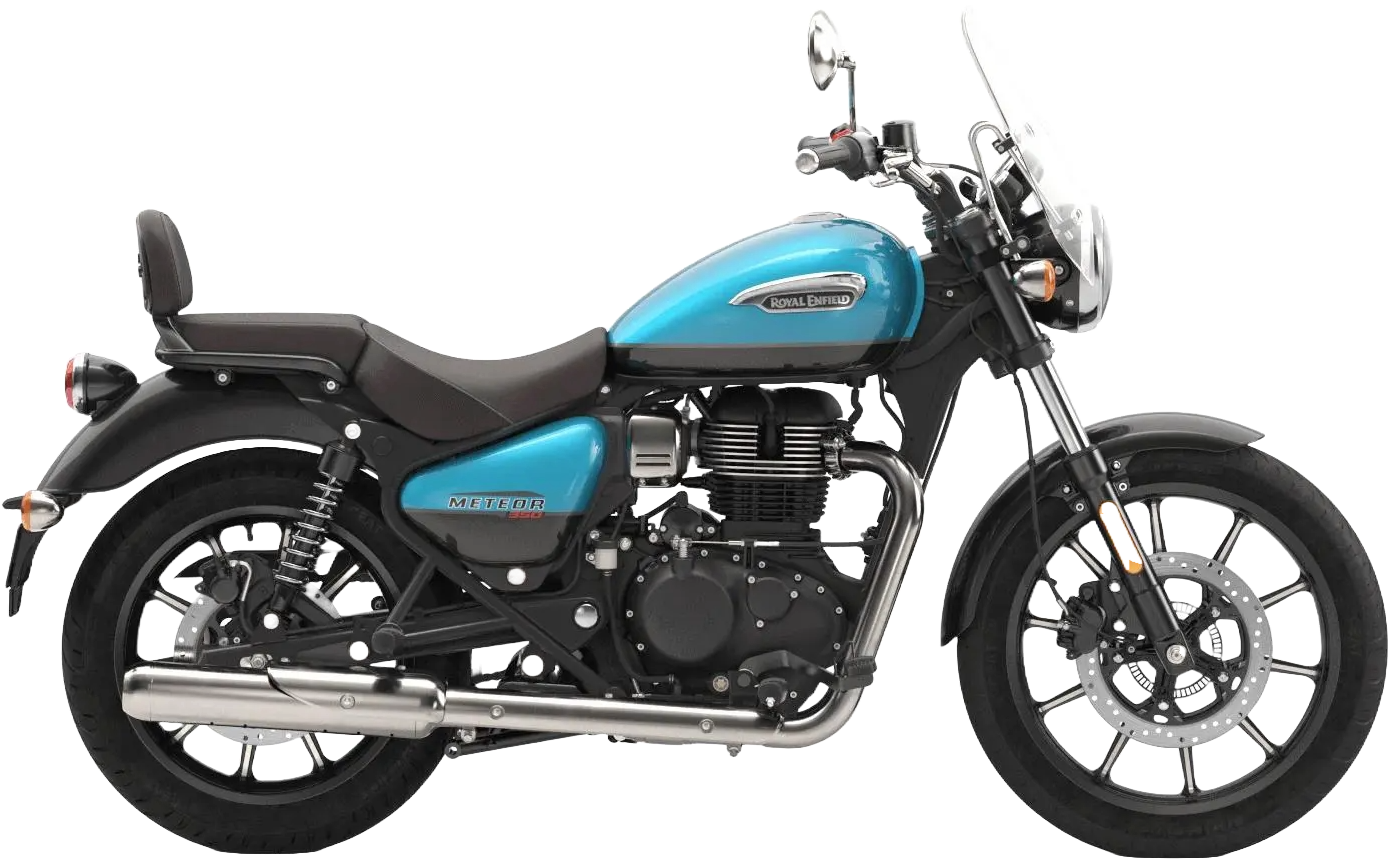 The Supernova Blue variant of the Meteor 350 blends vibrancy and elegance with the cruiser spirit. Its dual-tone metallic blue finish with striking accents gives it a premium, modern character, without losing the classic cruiser silhouette. Mechanically, it shares the proven J-series 349 cc engine and chassis with other Meteor 350 variants, offering smooth power delivery, confidence in braking, balanced suspension and an LED headlamp. The Supernova Blue differentiates itself in style, making it a desirable choice for those who want both performance and visual flair on the open road of Kolkata.