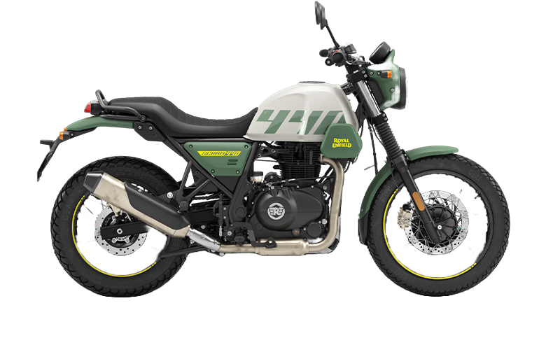 The Scram 440 Trail Green fuses Royal Enfield’s scrambler ethos with rugged practicality. As part of the “Trail” variant family, it retains spoke wheels with tube-type tyres, emphasizing off-road readiness while remaining competent on paved roads. The Trail Green finish gives it a distinctive adventure-ready look — earthy, bold but unpretentious. Under the skin, it shares the same robust Long Stroke 443 cc engine, six-speed gearbox, LED lighting, and switchable rear ABS as its siblings. The Trail Green is ideal for Kolkata’s riders who want a no-nonsense scrambler capable of daily use, exploring rough roads, and navigating backroads with confidence.