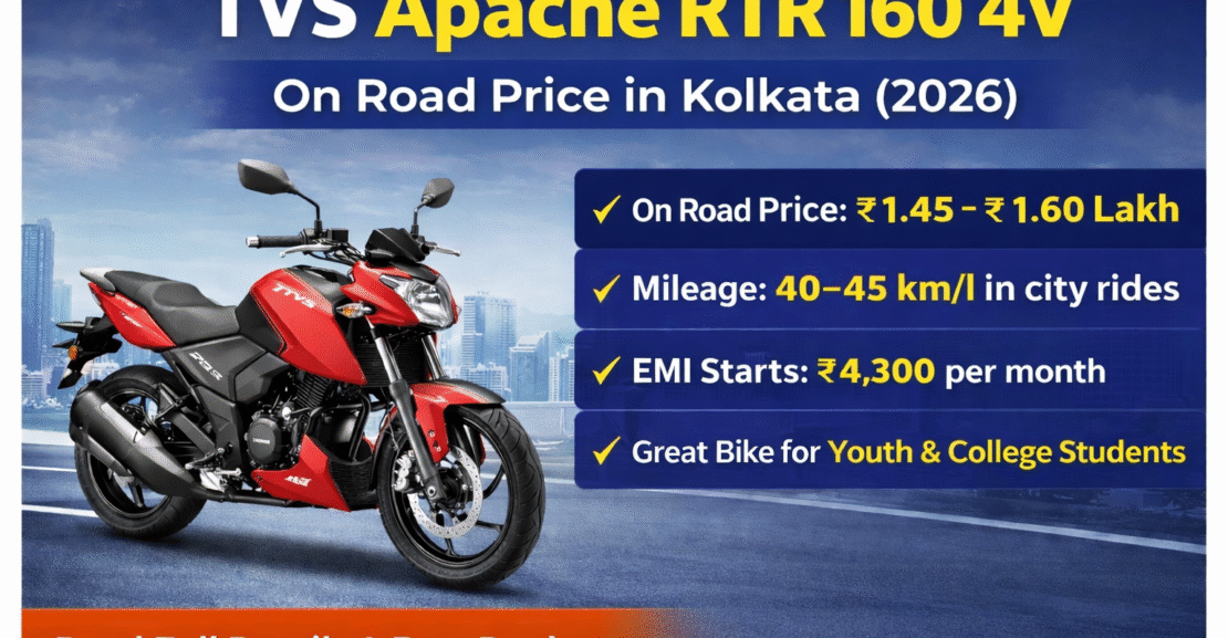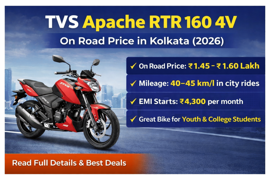 💰 TVS Apache RTR 160 4V On-Road Price in Kolkata (March 2026)